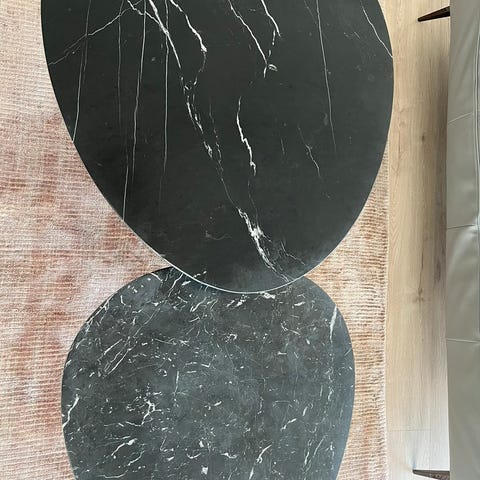 Marmorens naturlige årer gør hvert bord unikt og giver et smukt, eksklusivt look. Det lette stålstel skaber en fin kontrast til den tunge sten og giver bordet et elegant helhedsudtryk.