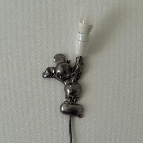 Lækker vintage lampe i tin. Den er renoveret med ny porcelænsfatning og sort/hvid stribet stofledning. Jeg har en tilsvarende Mickey Mouse lampe til salg, som kan ses i en anden annonce. Købes de som sæt, gives der 200 kr i rabat. Kan sendes efter aftale.