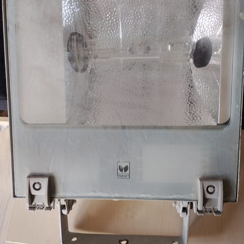 4 pæne store industri lamper i god stand. Lidt knofedt, og renset benzin skal nok gøre dem rigtig pæne.