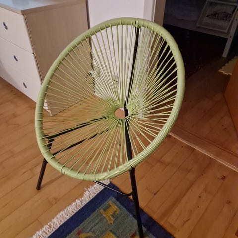 Meget flot stol. Har bare stået til pynt. Almindelig slitage. Se på billeder. Kan både bruges inde og ude.