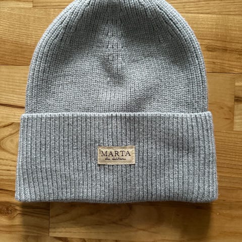 Strikket i 100%uld. Kradser ikke iflg mig 😊 meleret grå. Til lille hoved