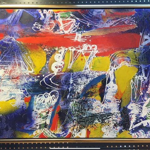 Abstrakt maleri i træramme PETER MANDRUP ORGINAL