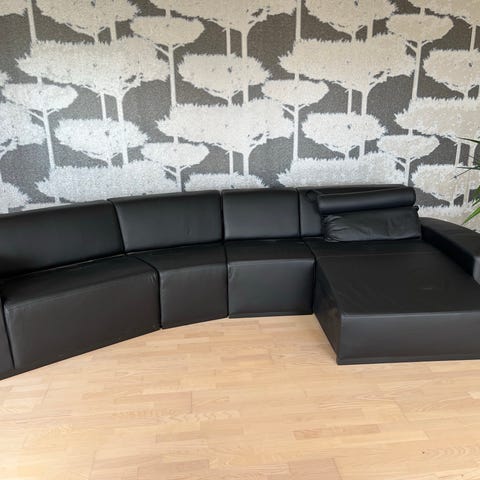 Næsten ny lædersofa. Købt i april 2024 i Selta. Sælges da den er for stor til vores stue. Med massive egetræsben.