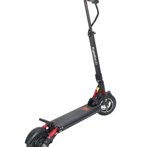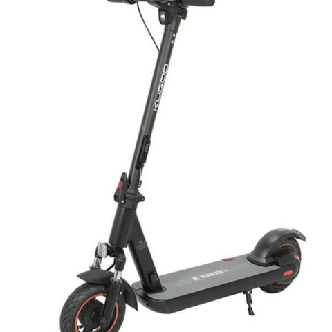 Elektrisk løbehjul med digitalt display, for- og bagaffjedring, kraftige dæk og LED-lys. Løbehjulet har en robust konstruktion med skivebremser.