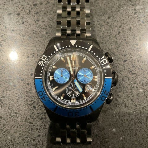 Breil TW023T herrearmbåndsur med hvid urskive, stål urkasse og sort rem. Uret har kronograffunktioner og analog visning.