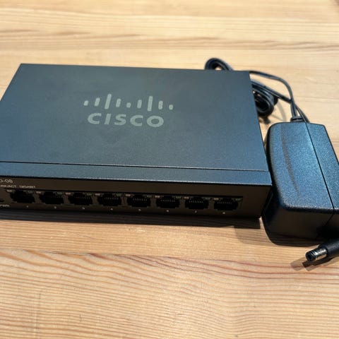 Cisco SG110D-05 netværksswitch med 5 porte.