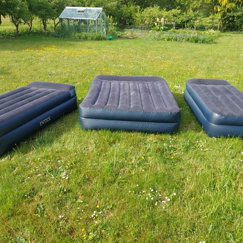 Sælger en INTEX luftmadras i single-størrelse (99 \times 191 \times 42 \text{cm}) i original, uåbnet indpakning. Den har aldrig været brugt, kun ligget opbevaret.