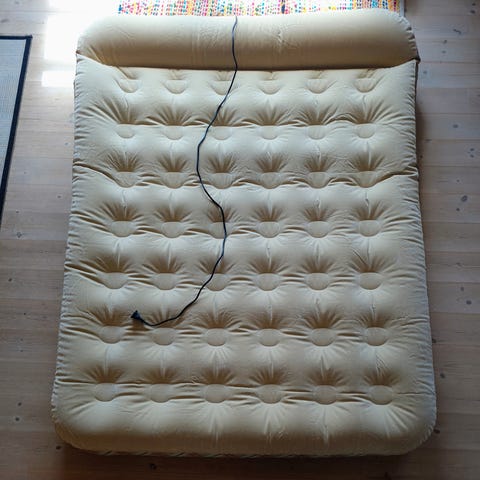 Denne luksusmodel har en indbygget elektrisk pumpe, der gør opsætning (oppustning) og nedpakning (tømning) utrolig hurtig og nem. Den komfortable højde på 42 \text{cm} giver en følelse som en rigtig seng. Perfekt til gæsteværelset, lejligheden, eller som en luksuriøs campingseng. Klar til at give dine gæster en god nattesøvn!
