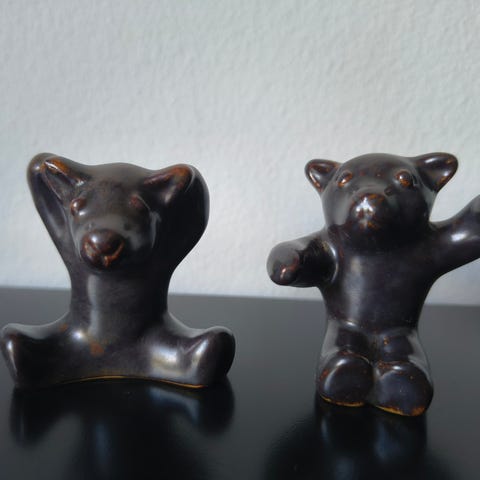 To Små siddende bjørne. Højde 4 cm. 100 kr. stykket.