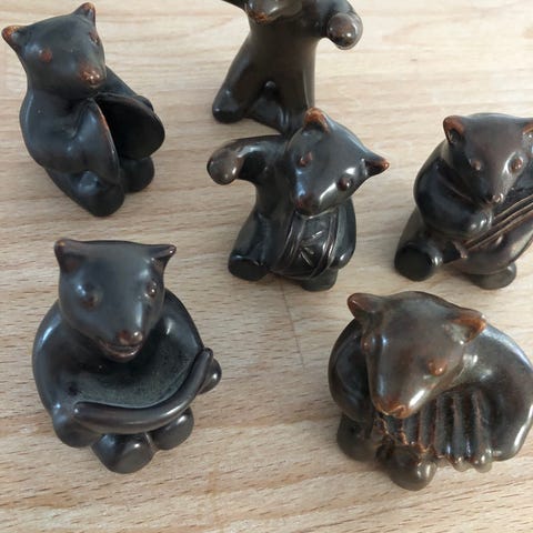 En L. Hjorth musikant, bjørn med tromme. Højde 5,5 cm. SOLGT.