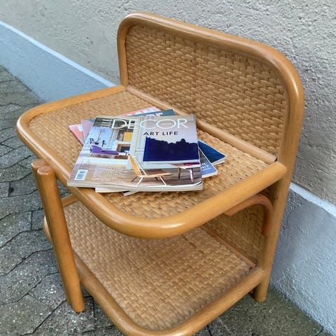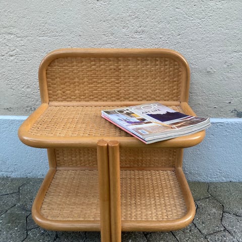 Super fint vintage bambus sengebord med smart lille skab nederst. Super skøn størrelse til sommerhus, soveværelse eller mindre lejlighed. H 74 B 42 D 22,5. Flot stand og få brugsspor. Solidt, enkelt og tidsløst. Kan leveres
