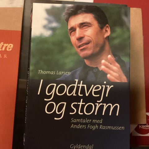 Thomas Larsen Anders Fogh Rasmussen bog med titlen 'i godtvejr og storm'.