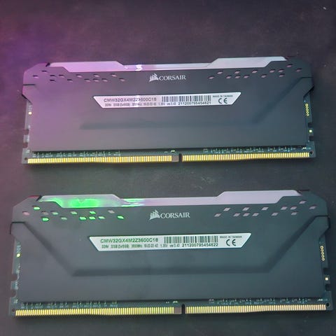 Corsair Vengeance Pro RAM 2x16gb moduler med RGB belysning på toppen. 3600Mhz