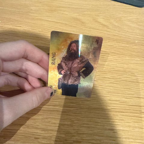 Valdesol kortspil med holografisk design og billeder af nødder på forsiden. Kortene har farverige og reflekterende overflader, hvilket giver et unikt visuelt udtryk.