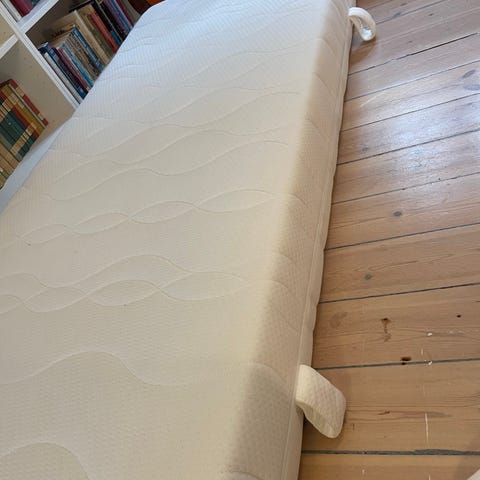 Enkeltmands springmadras 90x200. Brugt 1,5 år altid med topmadras på. Står som ny