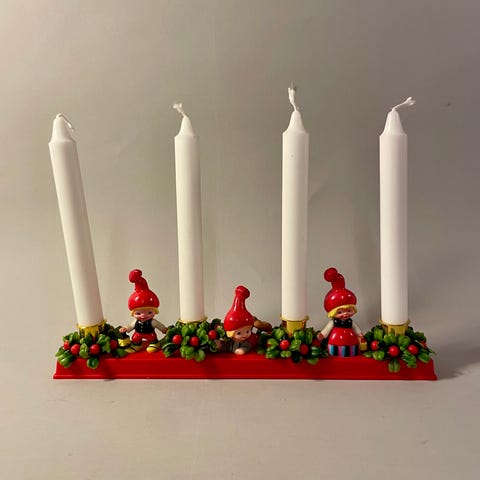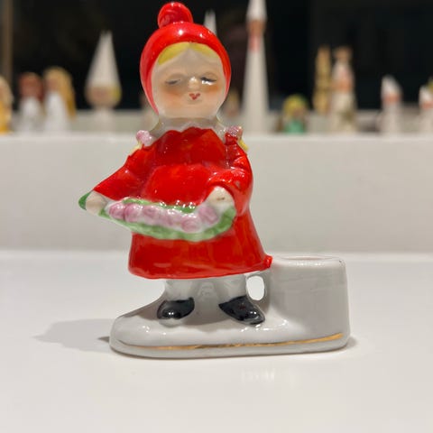 Rigtig fin Karen k porcelæns lysestage til julelys den er 8,5 cm høj fin stand har et mærke bag på den er født med