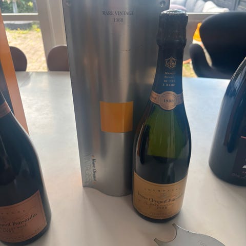 Veuve Clicquot Vintage 2012 Champagne. Champagne fra øverste hylde. Leveres i gaveæske. Sendes ikke. Jeg har 4fl til salg. Billigste pris set på nettet er 695kr.