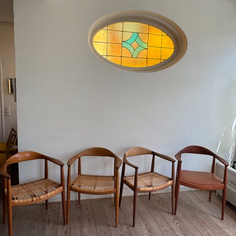 Stolene er udført af første producent Johannes Hansen, og er udført i Burma teak engang start 60’erne.