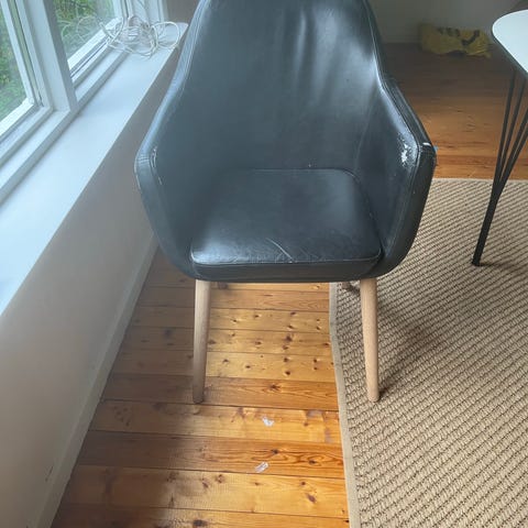 5 stk spisebordsstole, kunstig læder. Én af stolene har en lille revne. Kan afhentes gratis i Tebstrup.