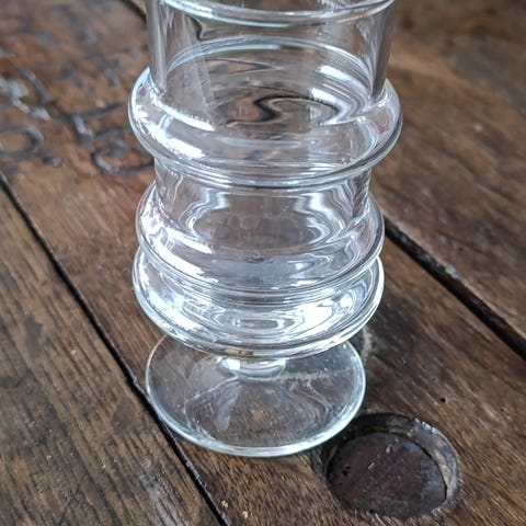 4 unikke, mundblæste portvins- eller snapseglas fra den kendte norske glashytte Knapstad Glass i Kristiansand i sydnorge. Der er to orange og to turkisblå glas. Alle 4 er udsmykket med farvede og matchende striber af snoede glastråde, der drejer sig op i kummen helt nede fra foden. Selve foden er I klart glas. Højden er 12 cm og fodens diameter 4,5 cm. De er alle 4 i perfekt stand uden skader. Nyprisen er 350 kr pr stk. De sælges kun samlet, så prisen er for alle 4. Står på Mols men kan gratis leveres I Aarhus og Ebeltoft eller sendes billigt på købers regning
