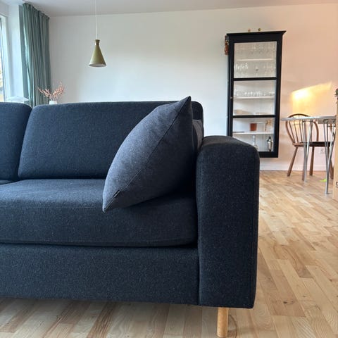 Sofa: l: 205cm, d: 85cm, siddehøjde 40cm