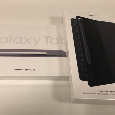 Jeg sælger disse to Samsung Galaxy Tab S10FE. De sælges til 3100 kr. pr. stk. og har hver 128 GB lagerplads. Den tilhørende Book Cover Keyboard kan købes med for 800 kr. (sælges også separat)