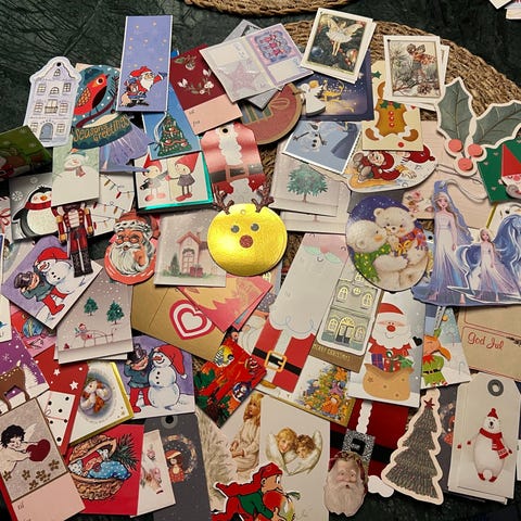 Samling af gammel til og fra kort samling samlet over mange år. Mange flotte😍 til og fra kort til at sætte på julegaverne