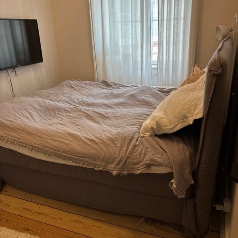 Enkeltseng som kan skilles ad og blive til dobbeltseng. 200*80*40 cm i samlet tilstand.