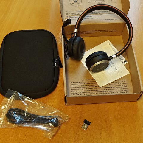 NYT. NYT - ikke brugt. Bluetooth gør det nemt at forbinde dit eadset til PC og samtidig en smartphone eller en tablet. Når du er på farten og bare bruger headsettet til at lytte til musik eller andet, kan mikrofonarmen let vippes op og klikkes fast til hovedbøjlen. Med dock til opladning.