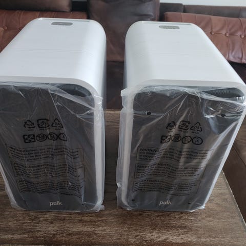 Subwoofer har en del ridser på den ene side efter at have ligget på siden men alt virker, som det skal.