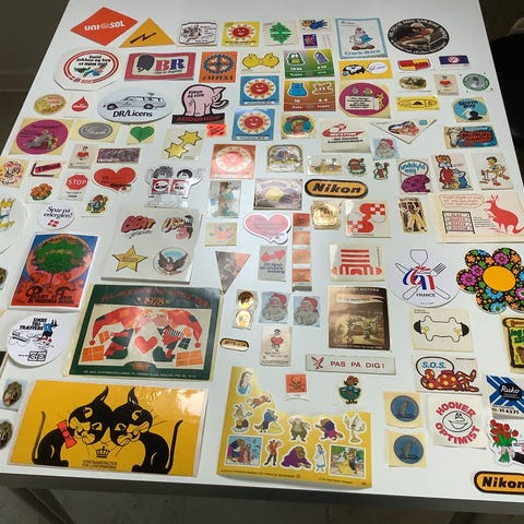 Stor samling vintage klistermærker & reklameetiketter – 1960’erne–1980’erne