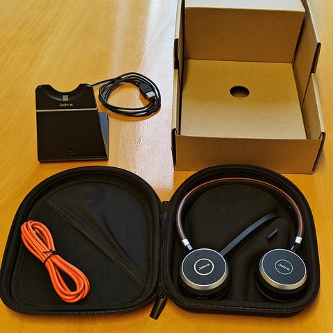 trådløse hovedtelefoner, Jabra, Evolve 65 SE, Perfekt, NYT - ikke brugt. Bluetooth gør det nemt at forbinde dit eadset til PC og samtidig en smartphone eller en tablet. Når du er på farten og bare bruger headsettet til at lytte til musik eller andet, kan mikrofonarmen let vippes op og klikkes fast til hovedbøjlen.