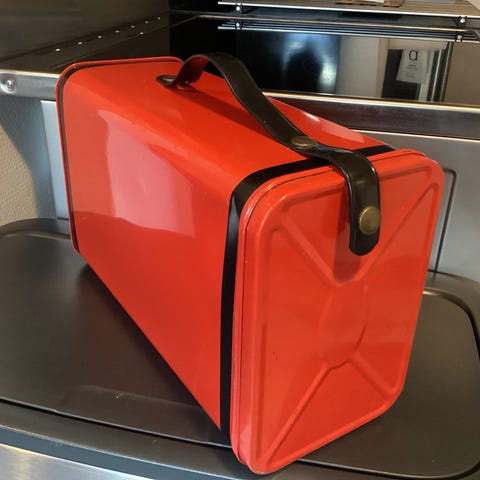 En gammel emalje madkasse, måske GLUD & MARSTRAND eller SVENSK , tre potter, m et låg og ikke mindst den originale holder, mangler tit , farve fløde hvid og grønne streger. Søgeord! Samler, indbo, indretning, retro, vintage, pynt, mad, Deco, dekoration, SENDER KUN MED DAO ELLER AFHENTNING.