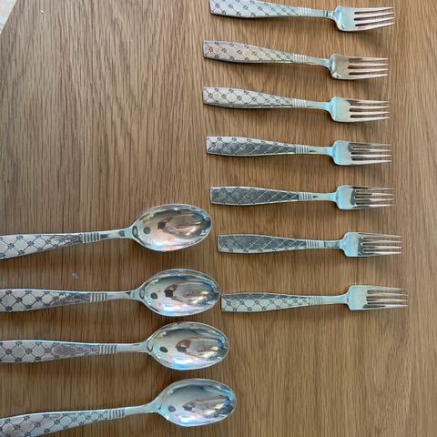 Jens Quistgaard - Azur - Trio sæt - kantede - med brugsspor i form af krakeleringer - ikke afslag - stemplet fra Kronjyden Randers - Pris er pr triosæt - har 4 sæt