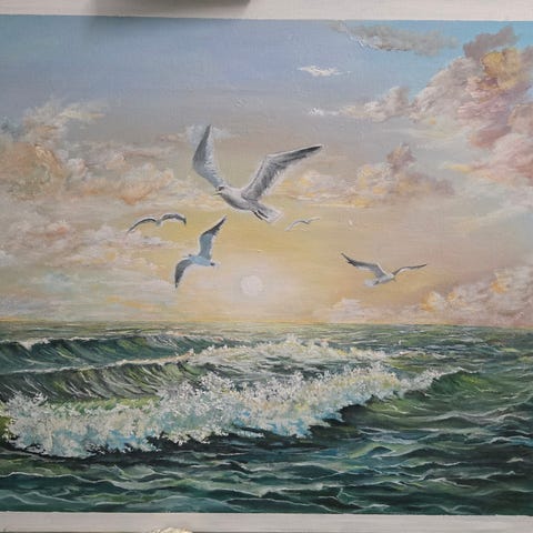 Et nymalet maleri, frisk fra lærredet.