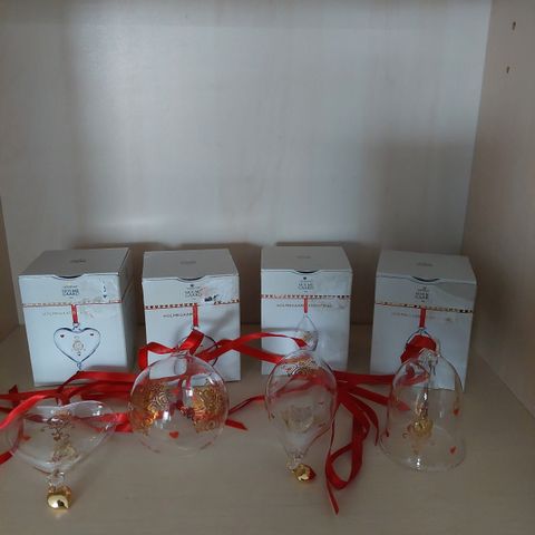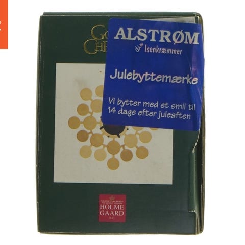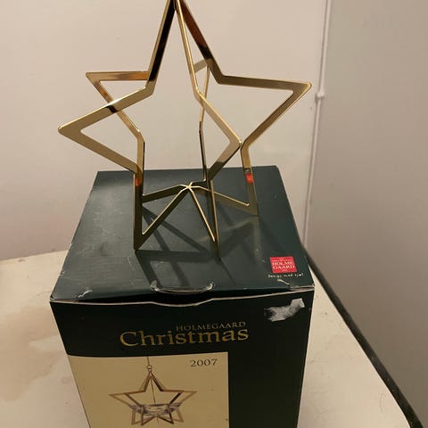 Holmegaard Christmas Jul Dekoration Ornaments. Sættet indeholder dekorative ornamenter til julebrug, fremstillet af metal med en guldfarvet finish. Er i original plastik og æsker. Velegnet til at hænge som pynt i hjemmet i juletiden - fra 2006 2007 2008 - alle 3 sælges samlet for 600kr