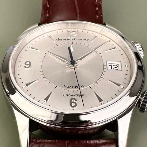 Dette ur sidder monteret på en orignal JLC croco rem med spænde i 18 karat hvidguld.