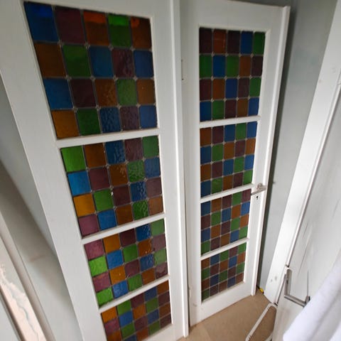Hvid glasdør med træramme