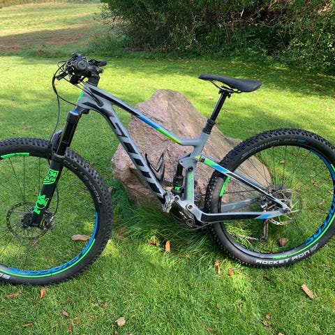 Jeg står og skal af med Scott Spark 960 med full suspension og dropper post.