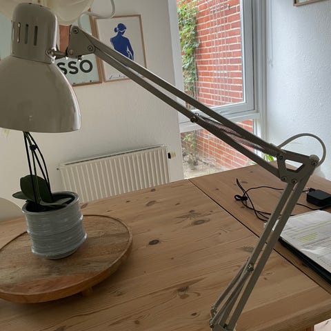 Sort skrivebordslampe fra IKEA. Mærket er "Forså". Nypris 229 kr. Har stået til pynt. Fungerer perfekt. Afhentes i Odense.
