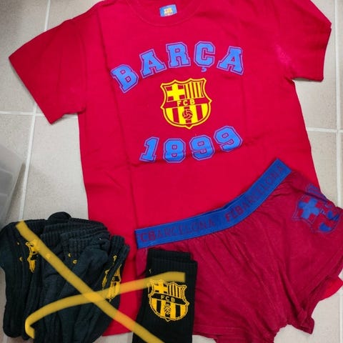 Fodboldstrømperne er str S/M de er 15 cm lange i foden 30kr købt i Barcelona