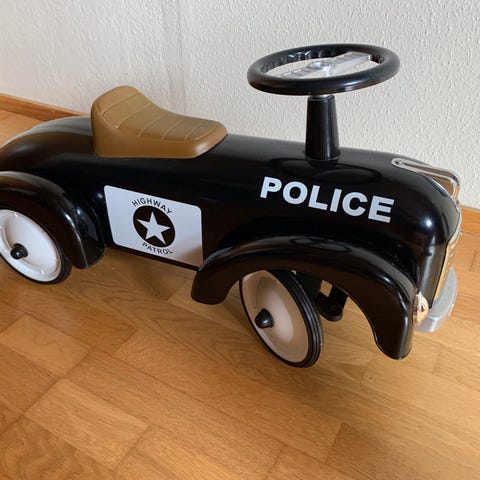 Politibil til den helt lille betjent. Forvent at blive anholdt for de mindste ting, heldigvis er politiet til at bestikke for en chokoladekiks. Kører fint.