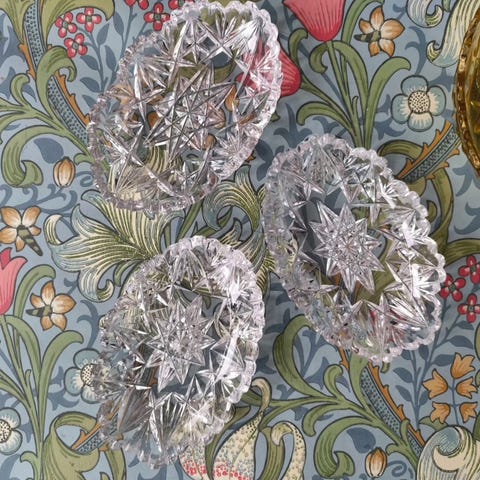 Større sæt i krystalglas -facetslebet skåle + serveringsskåle