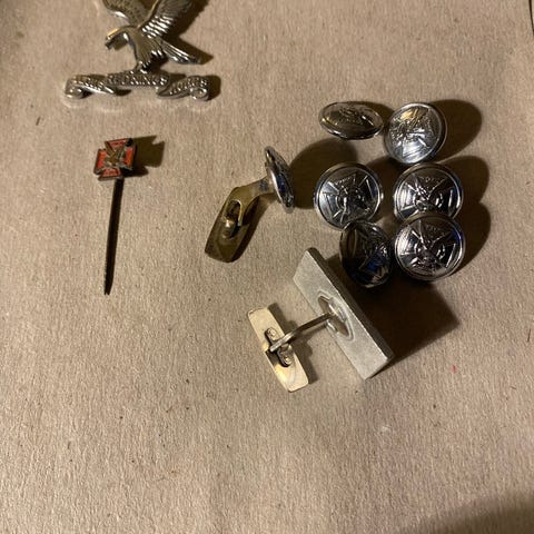Lot med Kasket pynt, knapper og lille falck ørn