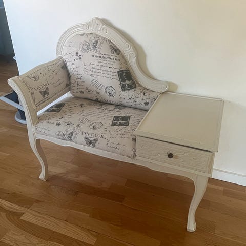 Antik telefonbænk i egeteæ er sat i stand og sælges nu med div. Opdateringer.