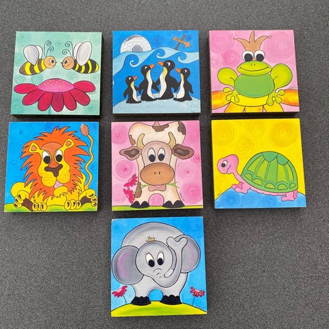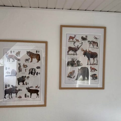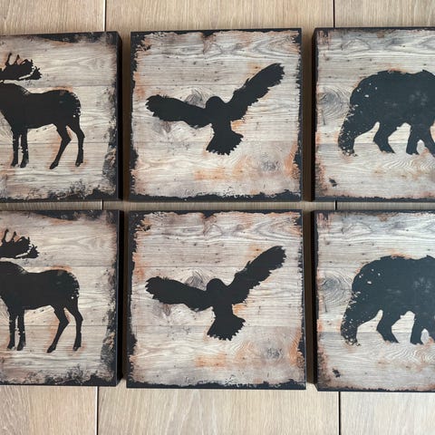 4 STK BILLEDER MED DYR i hårdt træ