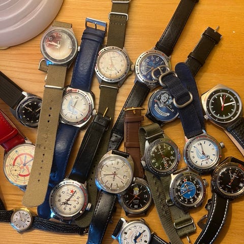 Mærker som Vostok, Raketa, Poljot, Slava m.fl.