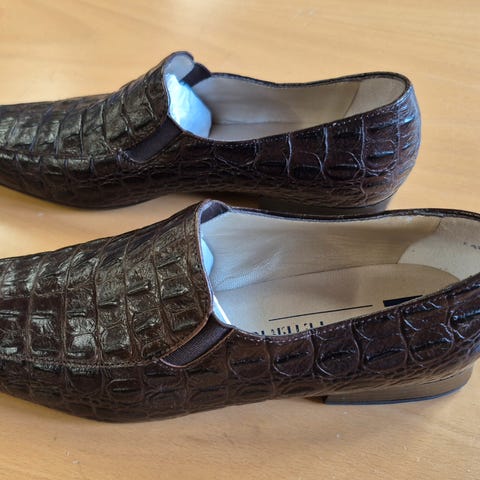Ene par med lysebrune stikninger, hæl 2,5 cm