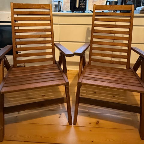 Køb dem billigt nu, inden foråret kommer. 400 for begge stole. Inklusiv hynder.