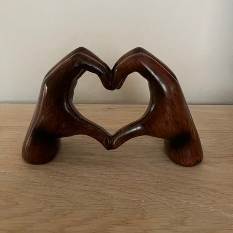 Træfigurer, Lille håndskåret teaktræs krukke, Højde 19 cm. Diameter 8,5 cm.